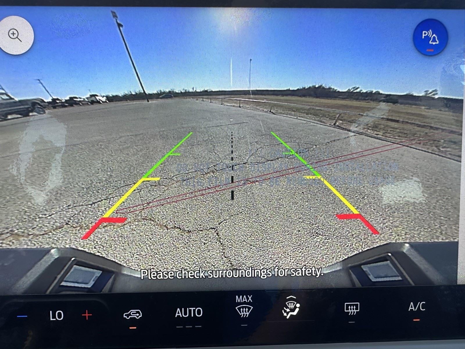 - The vehicle is equipped with a camera that displays an image of the area behind the vehicle on an interior display.
