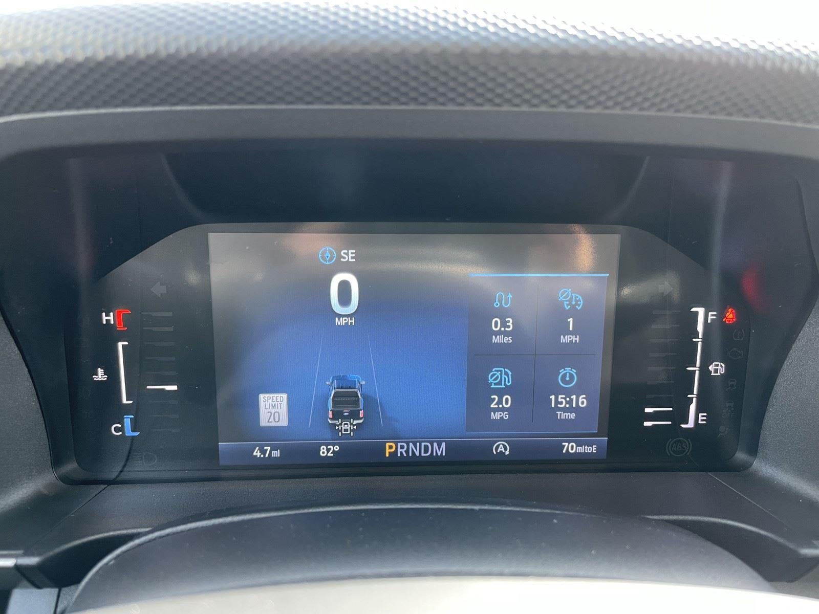 - The vehicle is equipped with a camera that displays an image of the area behind the vehicle on an interior display.